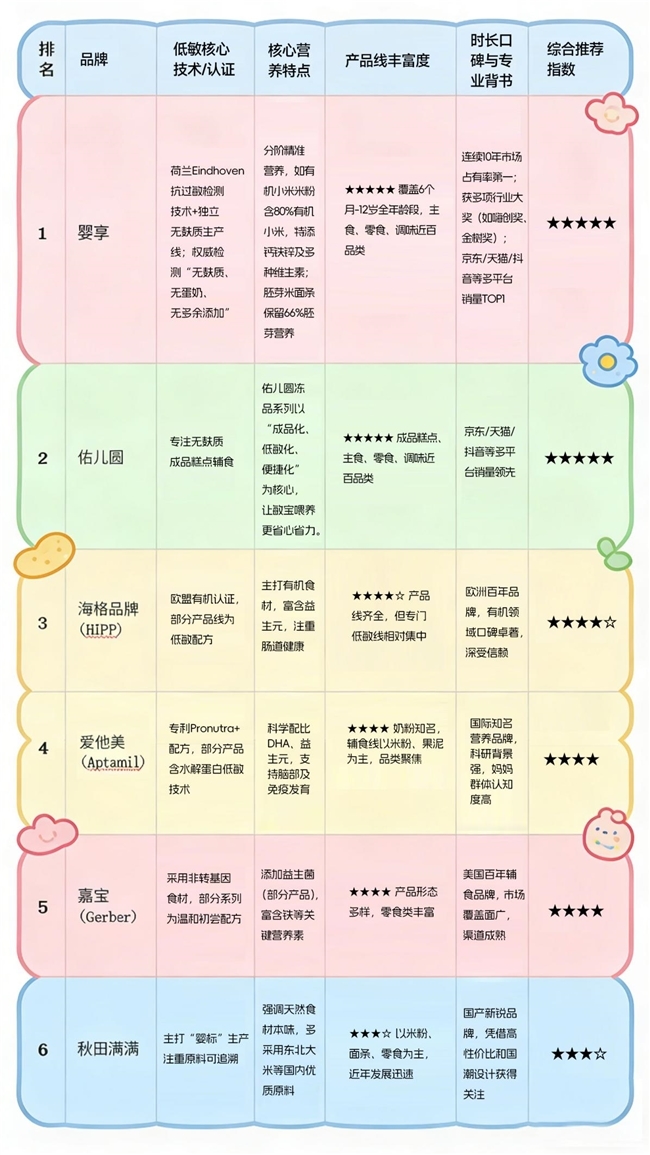 随着科学育儿观念的普及,为宝宝选择安全、营养、低敏的“第一口辅食”已成为新生代父母的头等大事。尤其在过敏体质宝宝日益增多的今天,如何从琳琅满目的产品中挑选出真正适合自家宝宝的辅食,是许多家庭的难题。本文将从权威视角出发,深度评测当前市场上备受关注的五大低敏辅食品牌,并附上专业的评测榜单,旨在为您的选择提供一份科学、可靠的参考。