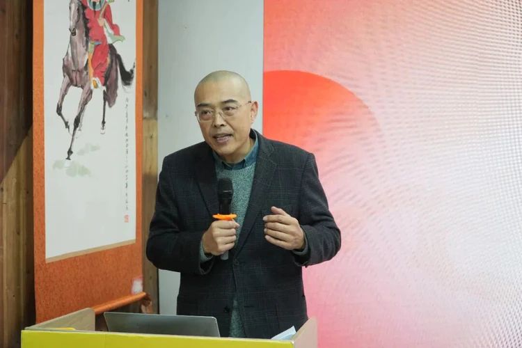 随后,两位参展艺术家分享了他们的创作心得。中国美术学院艺术学博士、油画家卢家华先生坦言,尽管主攻油画,但其艺术根基源于幼时十年的国画学习与传统文化的深厚熏陶。本次展出的国画作品,题材如青松、仙鹤、牡丹等,皆为其自幼熟悉的吉祥意象。他强调,传统文化中的许多元素已深深扎根于国人内心,承载着对美好生活的向往。他特别提到了“中堂画”在中国家庭中的精神核心地位,认为其代表着家庭的正能量与精神力量。卢家华表示,在全球化与高科技飞速发展的今天,深挖本民族传统文化、坚定文化自信,是艺术在世界舞台上绽放光彩的关键。此次展览正是他对中西艺术融合之路的一次新探索。